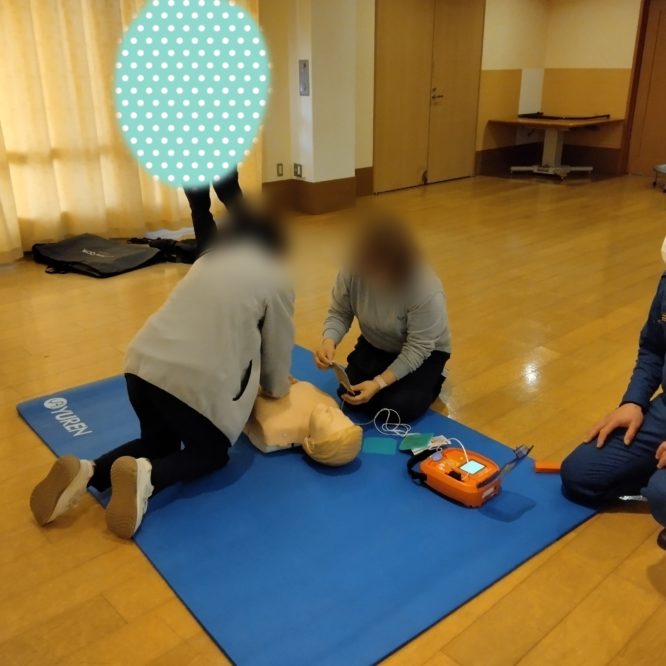 今日は加古川市消防署の方を講師に招き、職員向けAED講習会が行われました。