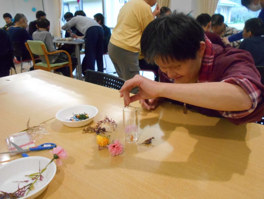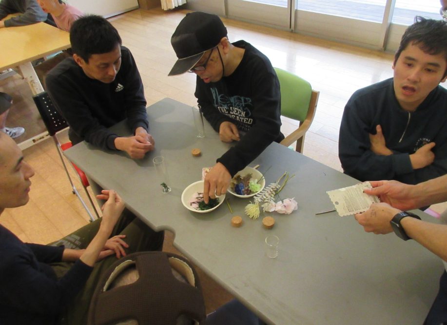 今日は皆でハーバリウム作りを体験しました。